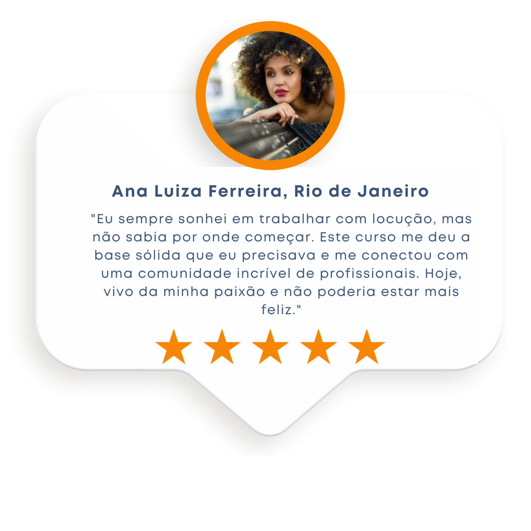 Transforme sua paixão pela locução em uma carreira gratificante e realizadora. Desenvolva autoconfiança e segurança em suas habilidades, fundamentais para o sucesso na profissão. Alcance a satisfação de trabalhar com o que ama e ter a liberdade de ser seu próprio chefe.