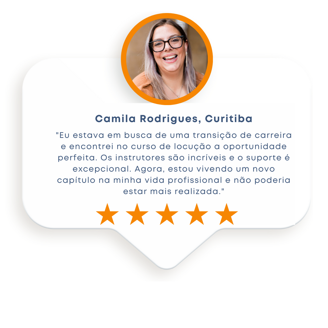 Com o suporte dos nossos instrutores especializados e uma abordagem prática e abrangente, você desenvolverá as competências necessárias para se destacar no mercado de locução. Além disso, o curso oferece um passo a passo claro e objetivo, adaptável ao seu ritmo e estilo de aprendizado.